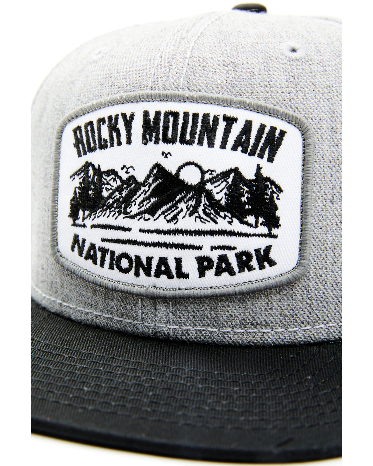- Black and heather gray with “Rocky Mountain National Park” mountain patch on front