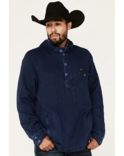 Wrangler Men’s Solid Lightweight 1/4 Button Front Unlined Hooded Pullover