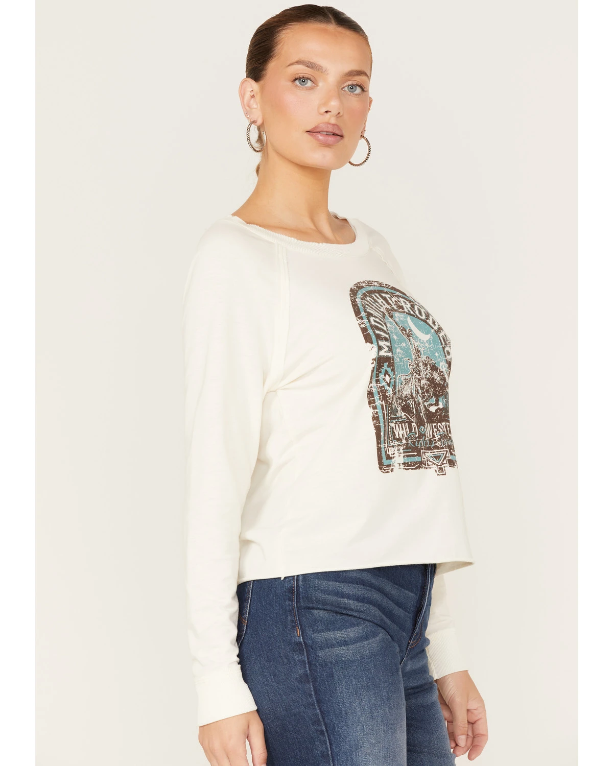 - Ivory with vintage “Midnight Rodeo” and rider graphic on front