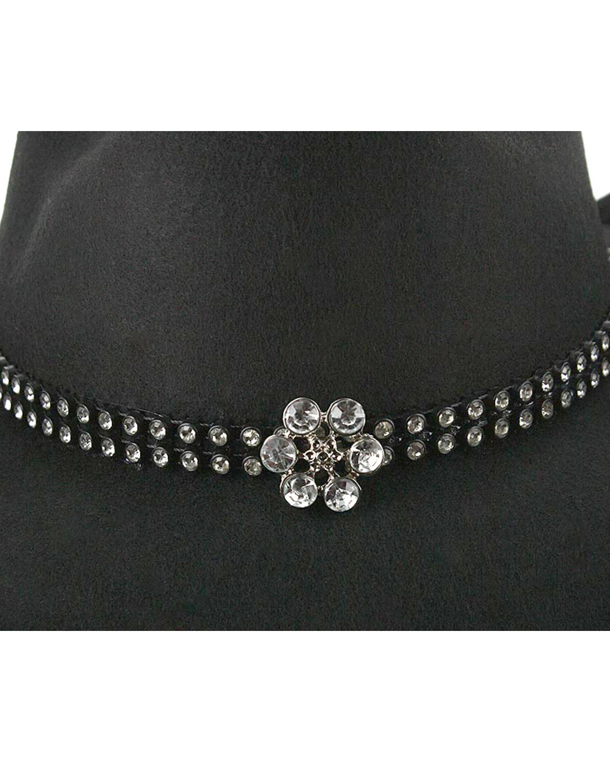 - Rhinestone hat band with suede tie